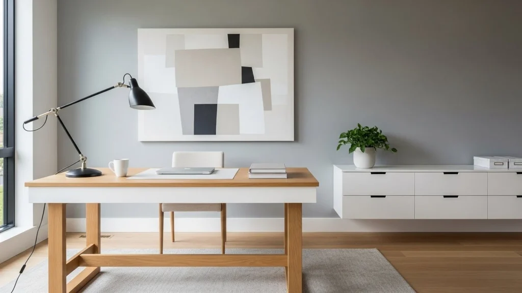 Pair lighting with home wall decor ideas like large art or pinboards. This keeps the workspace inspiring without clutter.